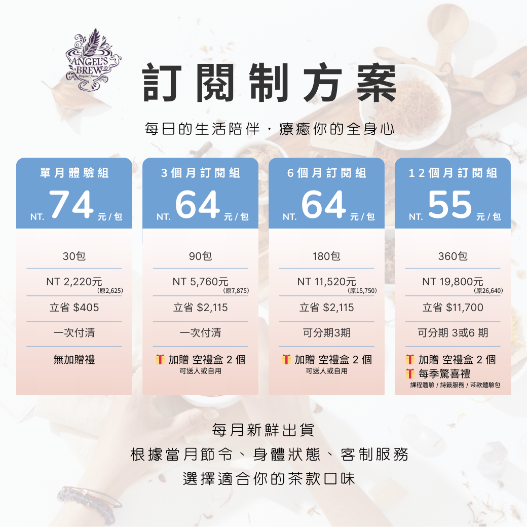 • 茶包總數:180包(每月出貨30包)