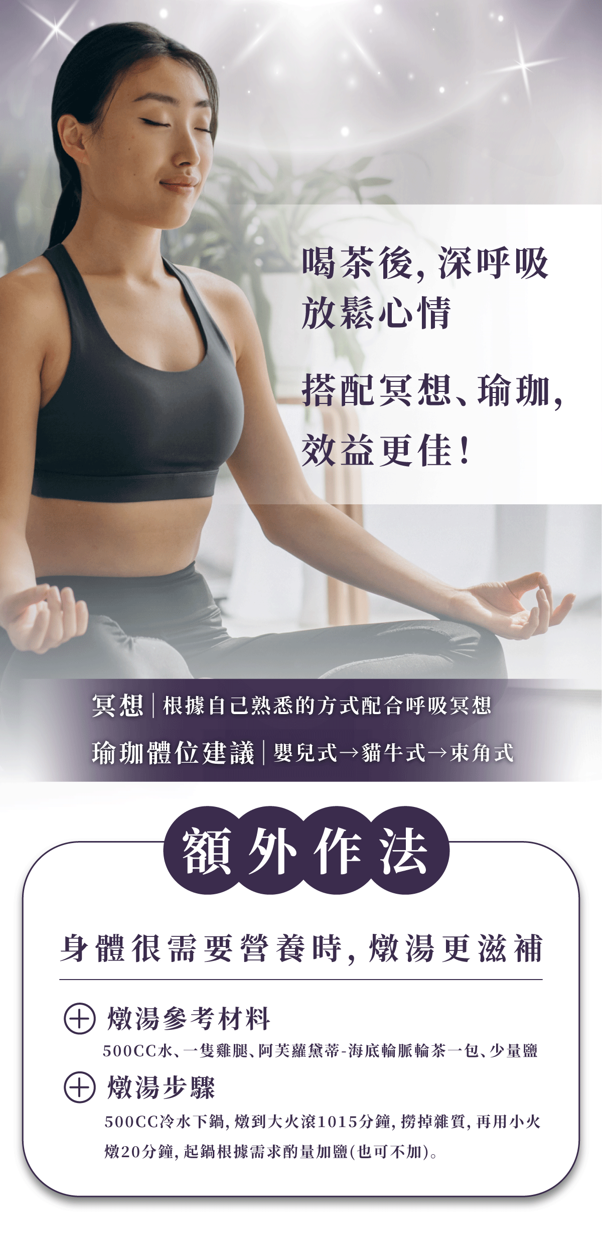 搭配瑜珈、冥想,效益更佳!