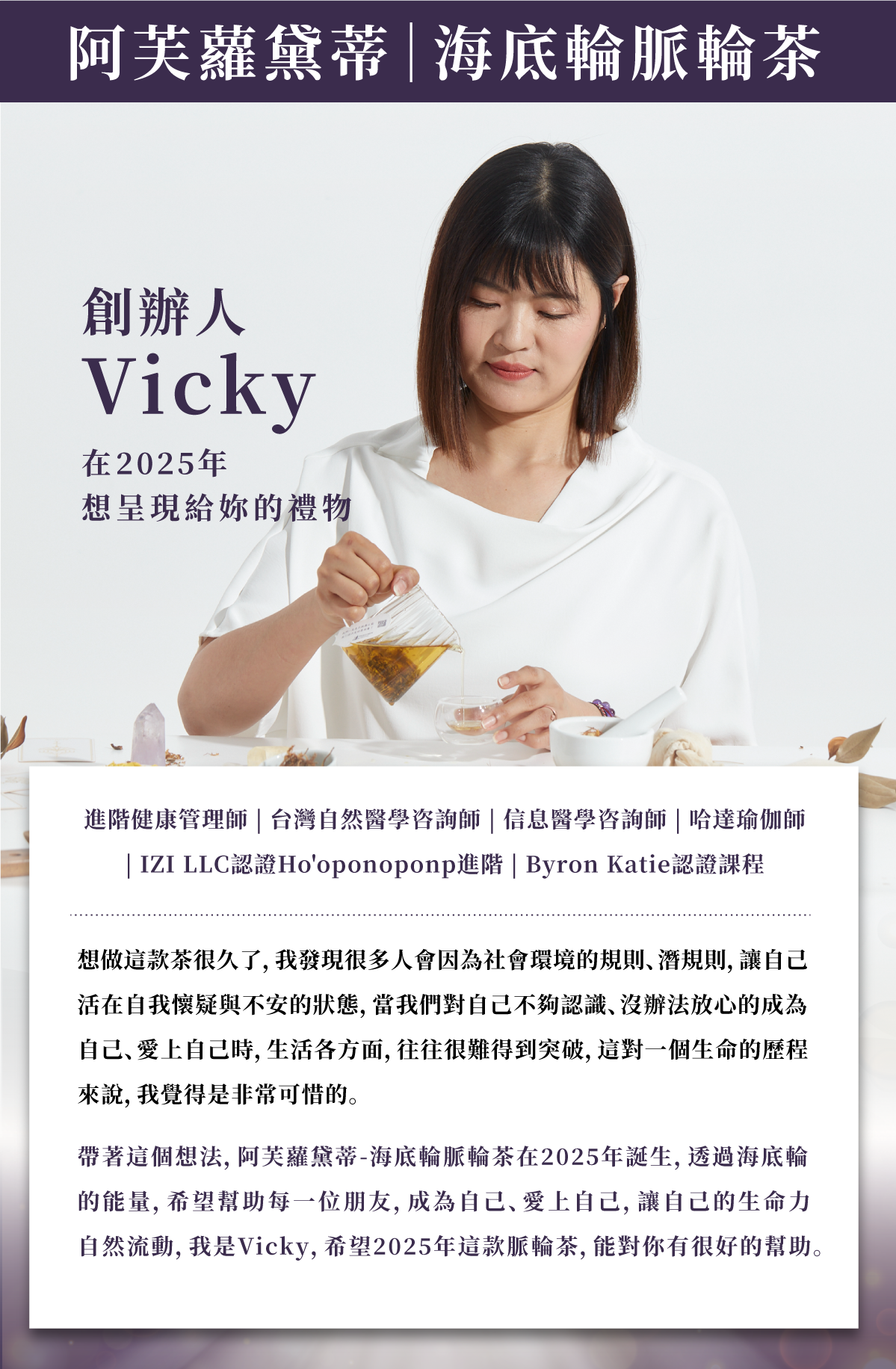 應用18味草藥調配的複方茶,幫助活化氣血、溫暖下腹,同時也能在氣虛時幫助支持體能恢復。