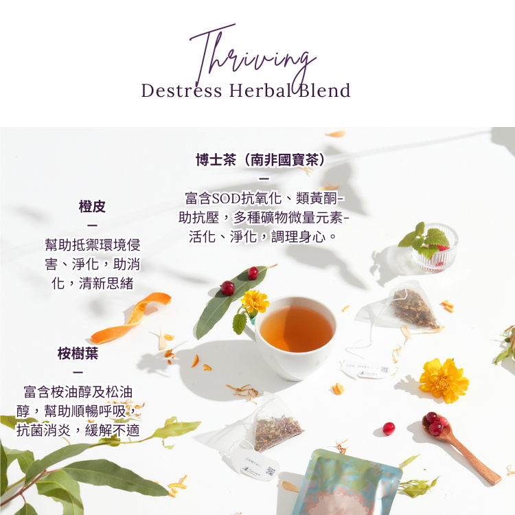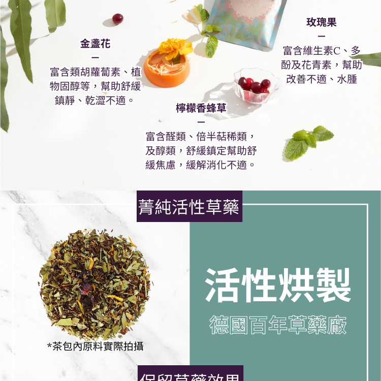 成分:博士茶/橙皮/檸檬香蜂草/金盞花/按葉/玫瑰果